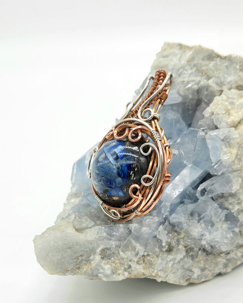 This is a free flow design using mostly copper and accented with sterling and argentium silvers.